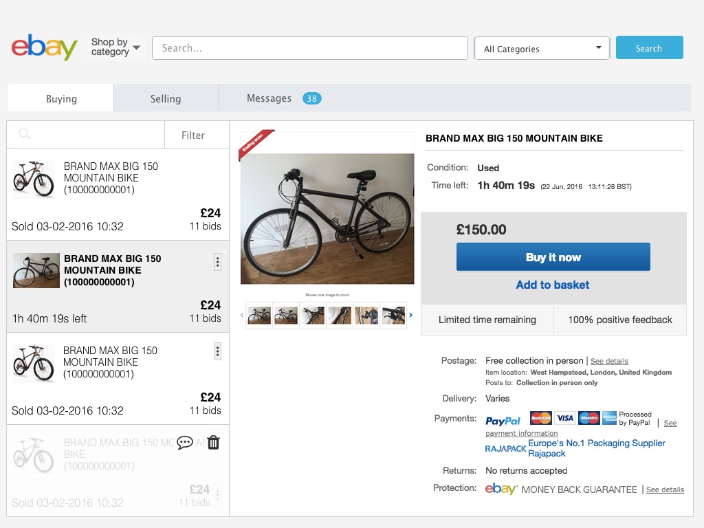 The buyer workflow in eBay is pretty straight forwards. Once you’ve shortlisted or bid on items you then return to review the items and their progress later on.